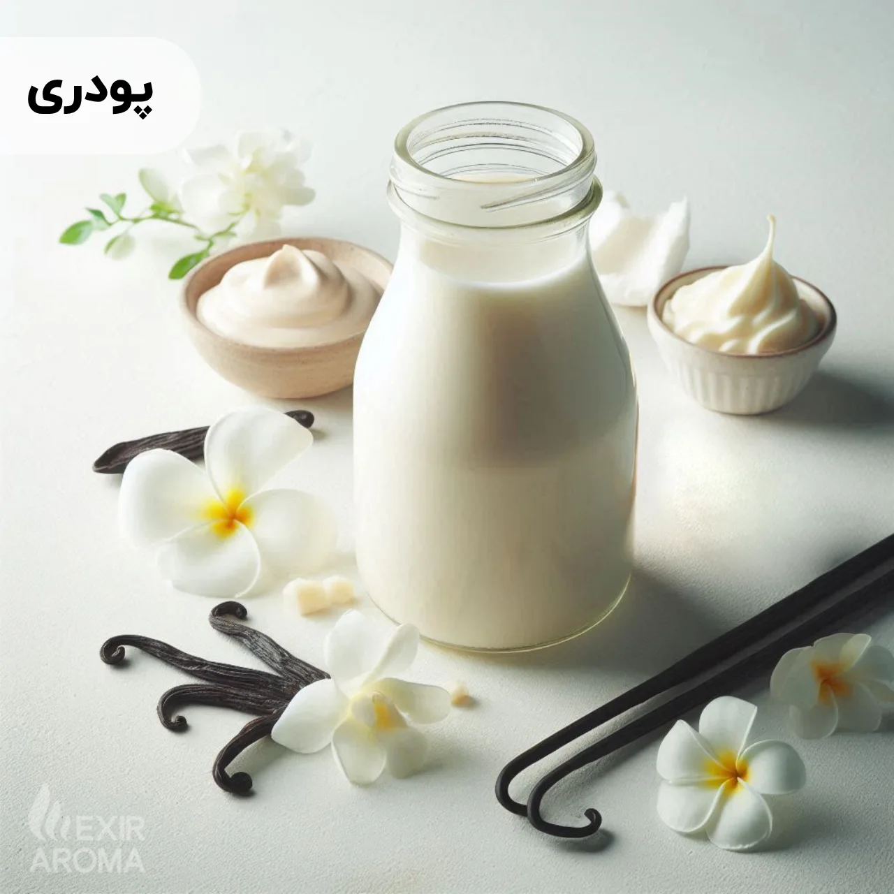 اسانس شیر وانیل خامه پودری یک ترکیب بسیار غنی و دلنشین است که نرمی طعم شیر، لطافت وانیل و خامهی لطیف را در قالبی پودری ارائه میدهد. این ترکیب که حس آرامش و تجمل را در هر قطرهی طعم خود دارد، الهامگرفته از بستنیهای فرانسوی، پودینگهای شیرین خانگی و کرمدسرهای سبک است.